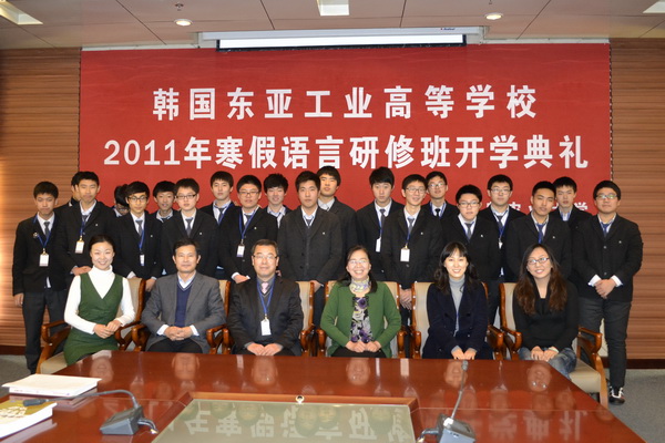 12月27日,青岛农业大学与韩国东亚工业高等学校2011年寒假语言研修班正式开班。国际教育学院院长梁安波、韩国东亚工业高等学校师生表参加开学典礼。