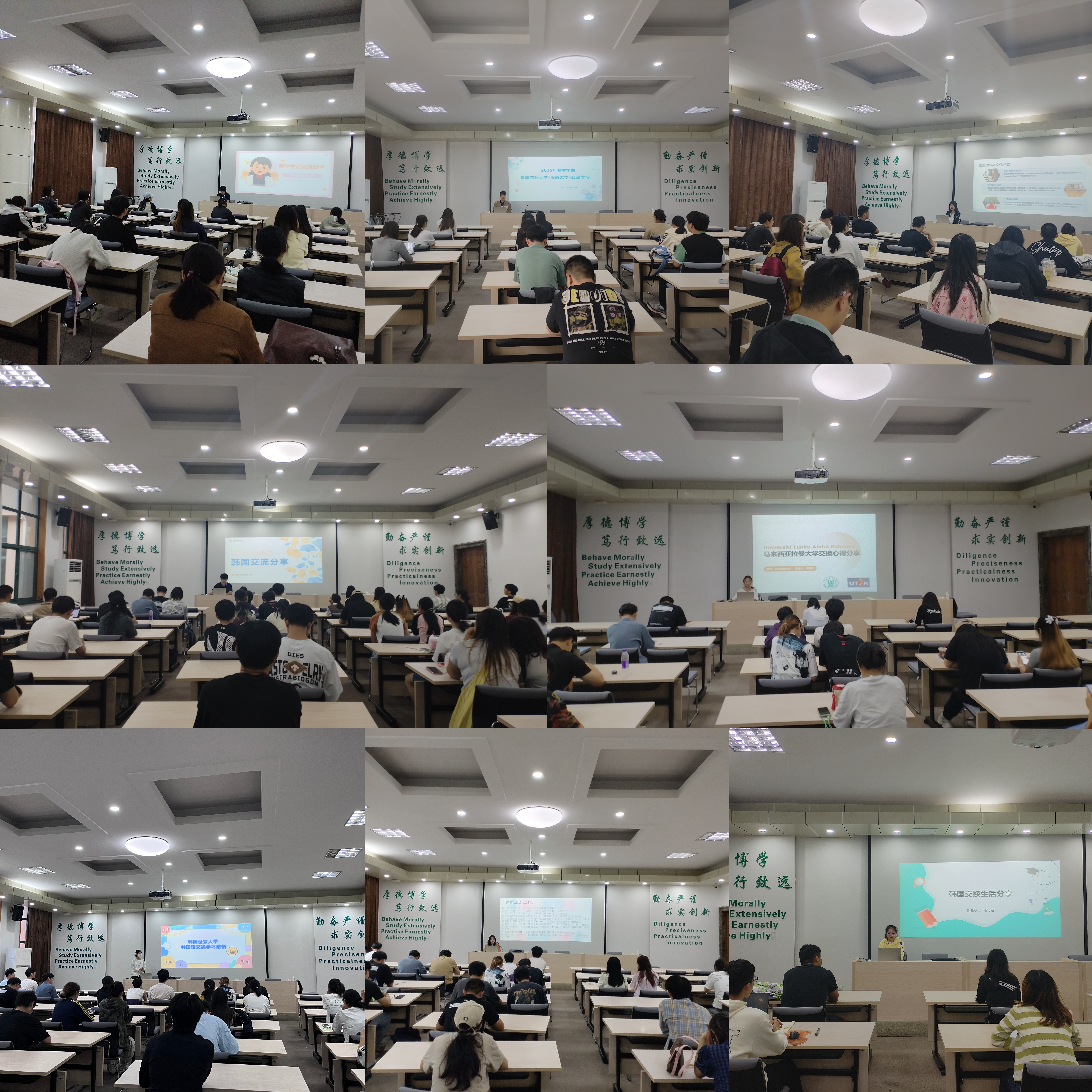 开展“青农留声”·青岛农业大学学生公派出国(境)项目学生分享会16场,为往期参加项目的学生搭台,主动分享赴友好院校交流、学习成果,覆盖城阳、平度校区学生数千人。通过“现身说法”的方式揭秘自身国际化成长的“有效密码”,鼓励更多学生参与其中。