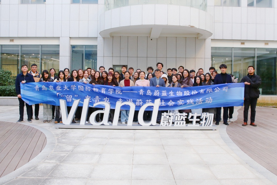 12月11日,青岛农业大学国际教育学院与青岛蔚蓝生物股份有限公司联合开展了“‘留’在青农,走进蔚蓝”活动,国际合作交流处处长吴薇率队带领我校全体留学生赴蔚蓝生物总部进行参观座谈。蔚蓝生物股份有限公司董事长陈刚、首席科学家王华明、人力资源总监郎春燕、动保国际部总经理李春晖、俄语区总经理贺丞龙等企业核心团队成员热情接待并参会。