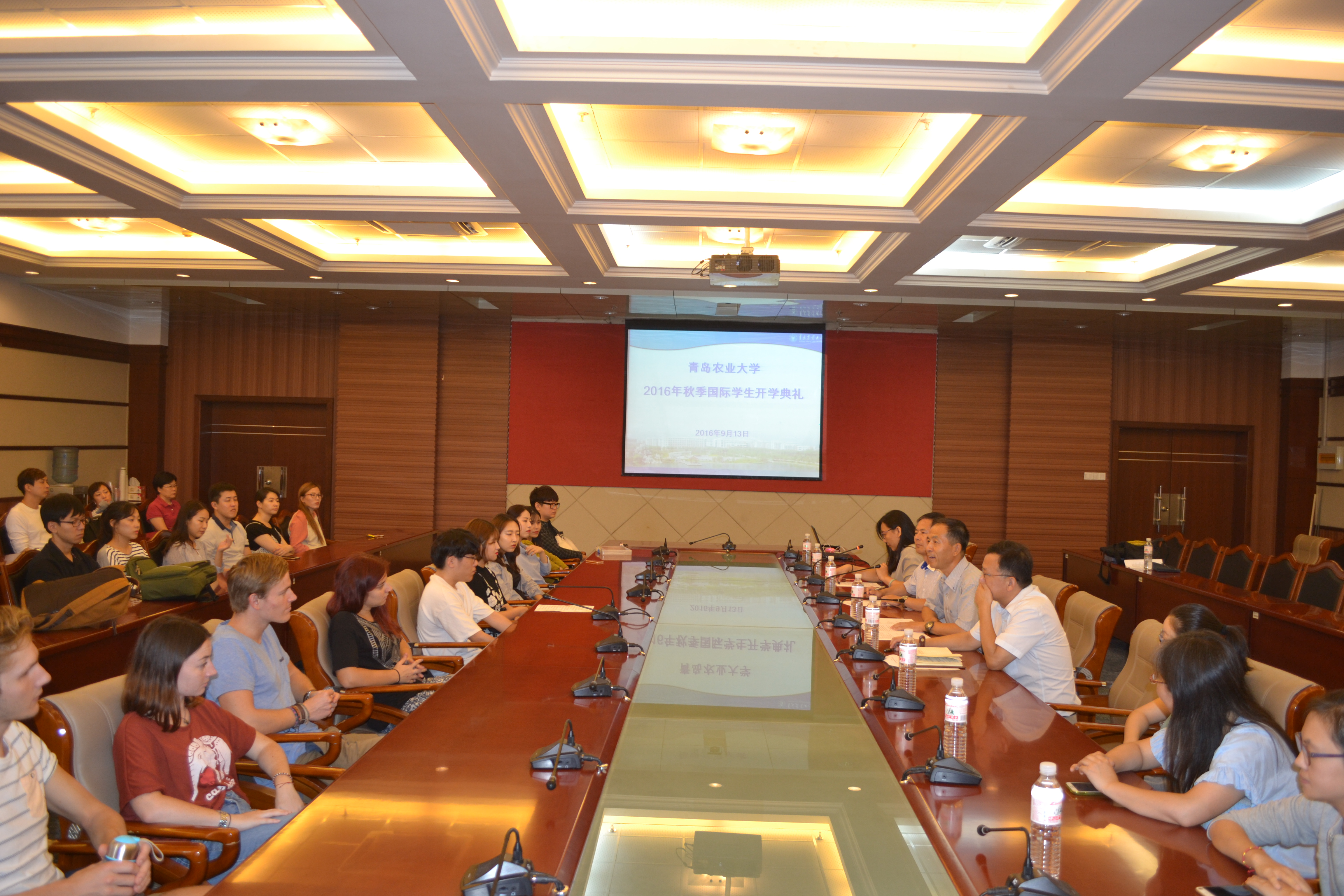 9月13日上午,青岛农业大学2016年秋季国际学生开学典礼暨入学教育在图书馆三楼会议室举行。副校长原永兵出席典礼。来自荷兰、南非、日本、韩国、蒙古、菲律宾、斯洛伐克、立陶宛8个国家的63位国际生代表参加典礼。