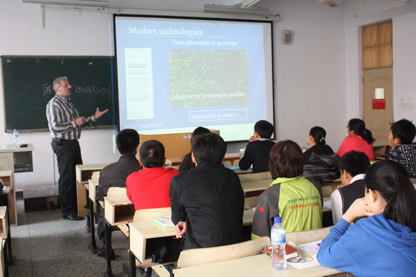 10月8日,青岛农业大学与荷兰瓦赫宁根大学(Wageningen University)联合开设的“植物遗传育种”硕士研究生课程(WUR-QAU Plant Genetics and Breeding MSc Training Courses)第一期“植物遗传育种及选择的基本原理”(Basic principles of plant genetics, plant breeding and selection)在教学楼C206多媒体教室开班。