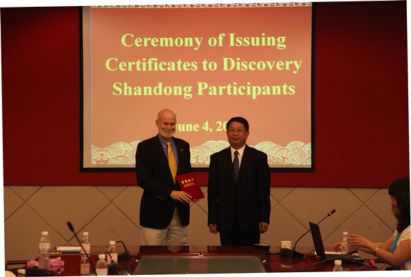 6月4日,青岛农业大学校长李宝笃为来校进行交流访问活动的美国莫瑞州立大学师生颁发了荣誉证书,标志着莫瑞州立大学代表团的交流活动,在体验文化、收获感动的旅途中,在与我校师生亲密交流相互了解中,画上了完美的句号。这是继去年成功交流访问后,莫瑞州立大学派往我校的第二批交流访问团。仪式由副校长原永兵主持。