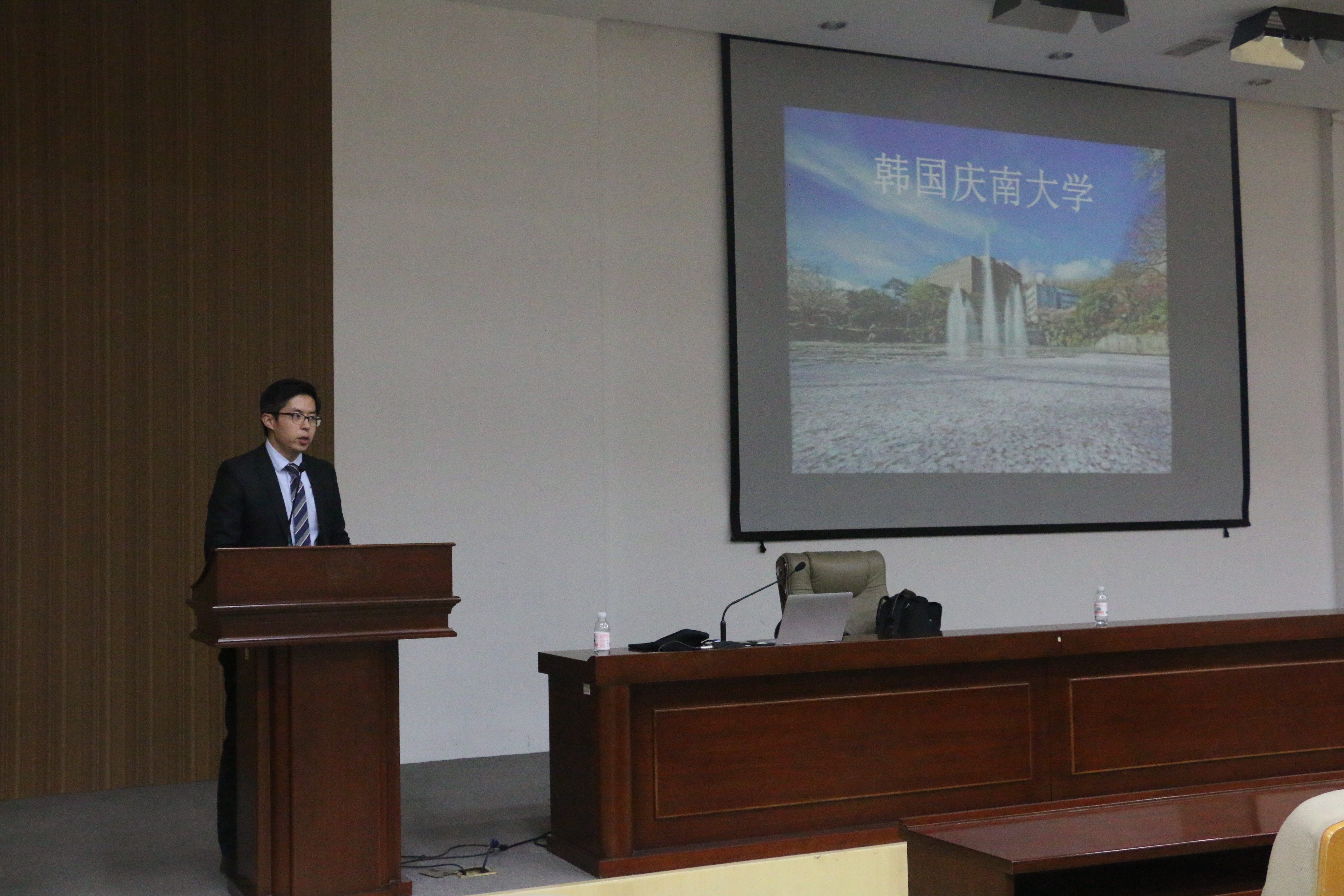 会谈后, 裴大庸主任在学术会馆为师生讲解了庆南大学专业设置的优势,就开展专升本的优势培养进行了进一步讲解,着重介绍了韩语系、传媒编导等专业的特色,热情的解答了在座师生的提问。