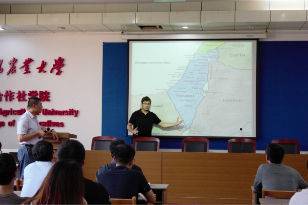 9月18日下午,以色列青年学者李欧博士在青岛农业大学合作社学院仙舟会堂为合作社学院师生作了学术报告,合作社学院院长李中华,教研室主任王勇等多位老师以及2014级学生代表到场参加。