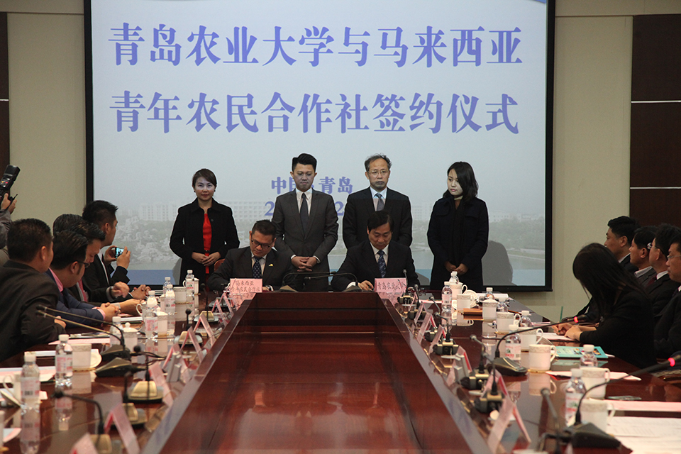 12月1日,由马来西亚上议员、马来西亚华人公会青年团团长暨马来西亚教育部副部长拿督张盛闻率领的代表团一行来校访问。校长宋希云会见了来访客人,并代表学校与马华公会青年团旗下的马来西亚青年农民合作社副主席拿督梁捷顺签署合作备忘录。中国驻马来西亚大使馆、山东省外事办、青岛市外事办以及我校有关部门负责人出席座谈会。